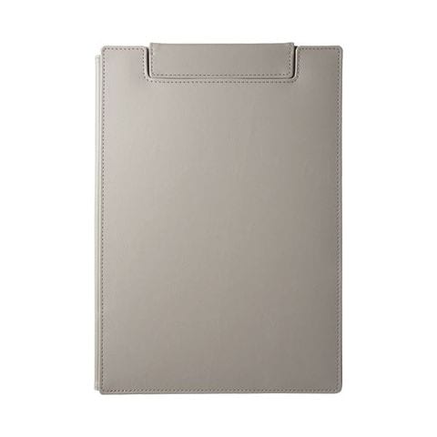 ●カバー付、グレーのクリップボード。書類や名刺が収容できるポケット付。
