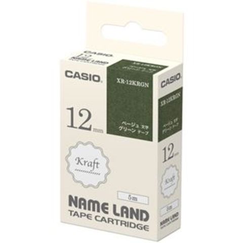 まとめ買い カシオ NAME LANDクラフトテープ 12mm×5m グリーン/ベージュ文字 XR-12KRGN 1個【×10セット】 【同梱不可】【代引不可】[▲][TP]