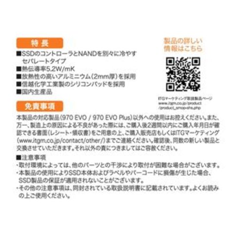 長尾製作所特製のセパレート型ヒートシンクです。※本製品には、NVMe SSD (M.2)は付属しておりません。※「970EVO Plus」および「970 EVO」に対応。