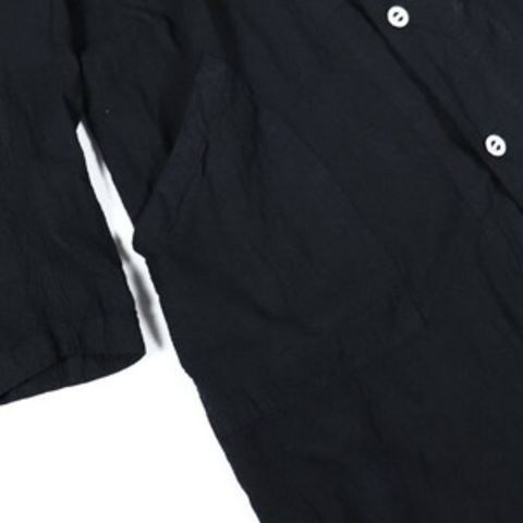 素材はリネンコットンの混紡を採用いたしました。リネンコットンは独特の軽やかさや風通しの良さと、肌触りの良さがあり、長いシーズン着用出来ます。着用と洗濯を繰り返す事によりリネン特有のビンテージ感のある風合いが楽しめます。