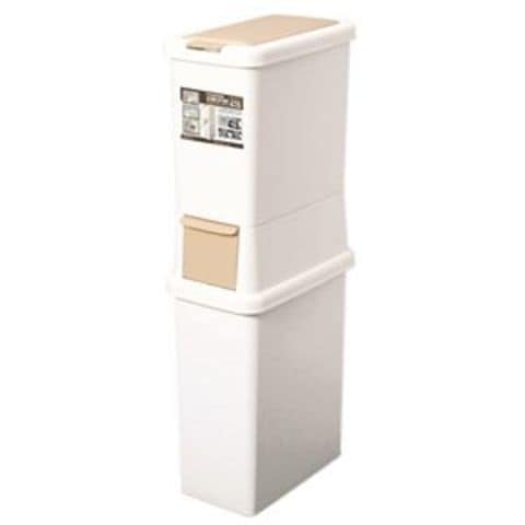 上段はワンプッシュ開閉式・下段は前開放設計タイプ。袋の装着がラクにできるポリ袋押さえ付き。置く場所に困らないすき間タイプ。狭い所や幅の狭い所を有効活用出来る分別ペール。分別用シール付き。キッチンで使うのに最適な二段式分別ダストボックスです。上下で分かれているので上段は可燃ごみ、下段は不燃ごみをと仕分けに便利です。上下段ともポリ袋おさえ付きで外に袋がはみ出ることなくスッキリ取り付けられます。上段フタは片手でワンプッシュオープン。下段の投入口は広口で2Lサイズのペットボトルも捨てられます。積み重ねて二分別できる省スペースダストボックス。