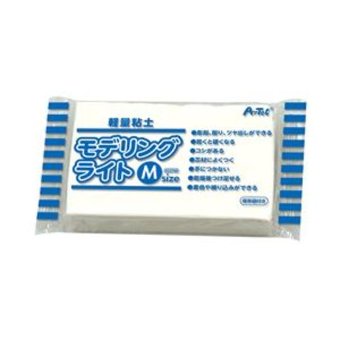 軽いのに削れる!磨ける!新開発の粘土が登場 モデリングライトの8つの特徴 1乾燥後、やすりなどで自由に加工できる。2自由に着色できる。3乾燥後は石像のような質感に。4乾燥後、粘土が付け足せる。5コシがあり、形が決まる。6手につかない。7磨くとツヤが出る。8さまざまな芯材によくつく。