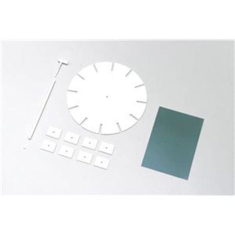 回転板 φ240mm×1、ミラー工作紙 193×135mm×1、回転調整用紙×8、ポールセット(キャップ・ふた・ポール)×1
