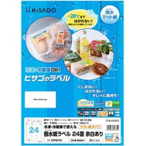 業務用 まとめ買い ヒサゴ 撥水紙ラベル A4 24面 64×33.9mm 四辺余白 OPW701 1冊(20シート) 【×3セット】 パソコン 周辺機器 コピー用紙 印刷用紙【同梱不可】【代引不可】[▲][TP]
