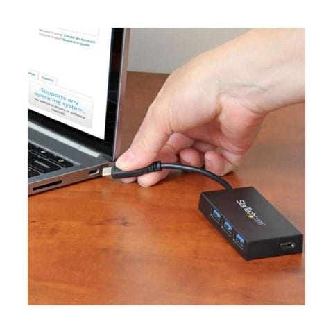 ●USBType-C/Thunderbolt3ポート1口を使用し、ノートパソコン、ChromebookなどにUSB-C/USB-A両タイプの周辺機器を接続できる4ポートUSB 3.0ハブ。