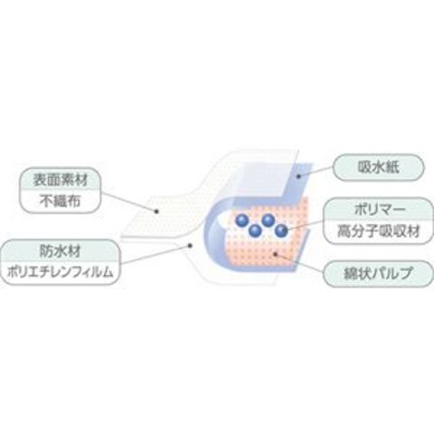材質:表面:ポリプロピレン不織布、防水材:ポリエチレンフィルム、吸収材:吸水紙・高吸収ポリマー・綿状パルプ
