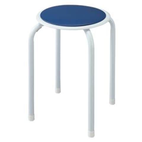 ●5脚までスタッキングできる丸型スツール。座面はブルーです。