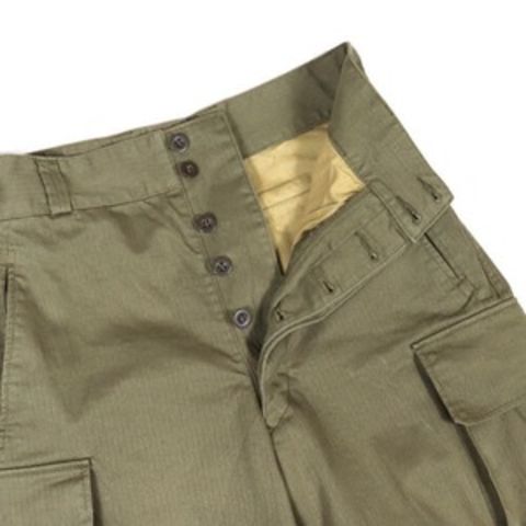 フランス軍が1947年に開発された戦闘服用カーゴパンツを忠実に復元しました。アメリカ軍のM43フィールドパンツの影響を大きく受けています。ただし、縫製産業が発達したフランスらしく細部までこだわって製作されており、破損しやすい箇所には補強を施し、大型のカーゴポケットを採用するなど、本家のものより耐久性、利便性に優れていました。弊社の製品は、M47/53と呼ばれる生地はヘリンボーンツイル、フロントボタンは2つの後期型モデルを再現いたしました。M47パンツの特徴である、太めのルーズなシルエットや、マチつきの大型カーゴポケット、裏地に使用されているスレキ生地など細部にわたり忠実に再現いたしました。