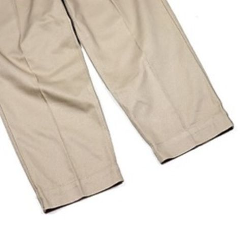 ベルトループが細い2タック、緩やかにテーパードした太めのシルエットやフラップの付いたバックポケットなど忠実に再現しました。腰回りは2タックで余裕を持たしています。前立てはボタン式です。