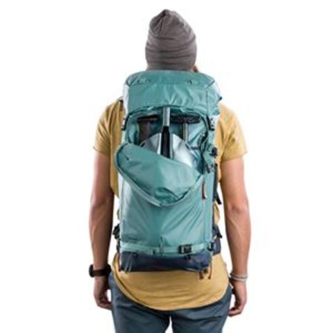 Explore60の外見上の特徴であるフローティングリッド(天蓋部)は、機材の持ち運びを即なうことなく、約15リットル分の調整できる容量を備えており、ジャケットやその他のアドベンチャーギアを素早く安全に固定できます。