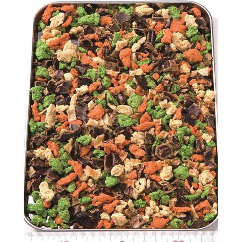 小麦、トウモロコシなどの穀物とジャガイモをカリカリに仕上げ、甘いイナゴ豆も入った栄養バランスのとれたフードです。