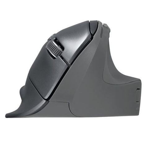 ●[エルゴノミクス]…手首のねじれを軽減させたエルゴノミクス(人間工学)デザインです。手の形に合わせて大きく傾斜しています。一般的なマウスは設置面に平行な形状です。無意識に手首をねじりながら操作することになるため、長時間操作はストレスの原因となります。+