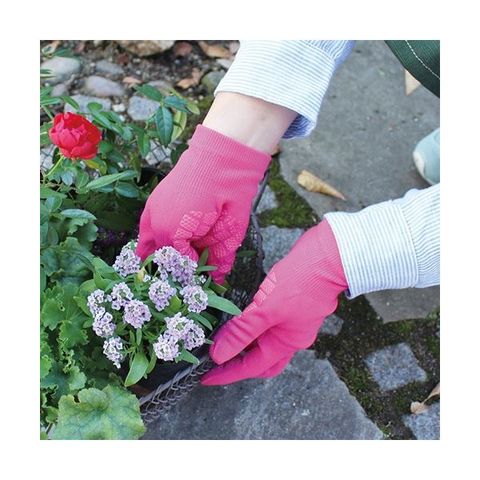 ●15ゲージという細かい編み目を実現する専用機械で編んでいるので、ガーデニングの土も編み目から入りにくい構造になっています。
