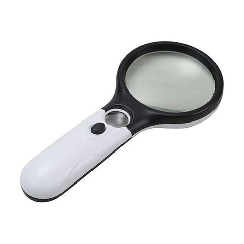 倍率5倍と倍率10倍の2つのレンズとLEDで、明るく大きく文字を見る事ができます。レンズ(大)倍率5倍・レンズ(小)倍率10倍。