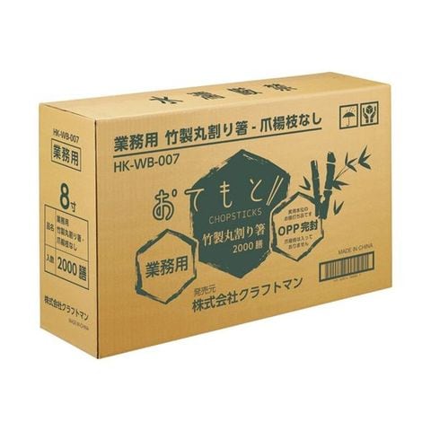 クラフトマン 業務用丸竹OPP完封箸爪楊枝なし HK-WB-007 1セット(2000膳:100膳×20パック) 【同梱不可】【代引不可】[▲][TP]