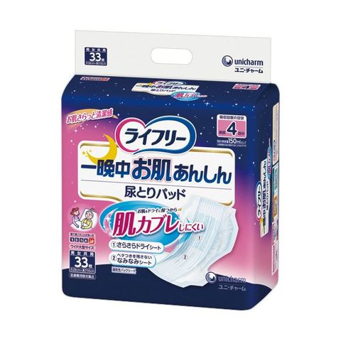 ユニ・チャーム ライフリー一晩中お肌あんしん尿とりパッド 4回吸収 1セット(99枚:33枚×3パック) 【同梱不可】【代引不可】[▲][TP]