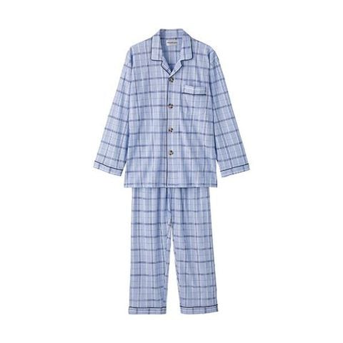 ケアファッション 大きめボタンパジャマ 紳士用 ブルー Lサイズ 89806-02 1着 柄指定不可 【同梱不可】【代引不可】[▲][TP]