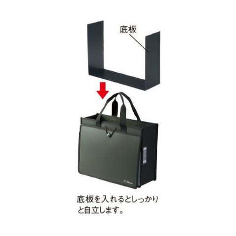 ●底板を入れるとしっかり自立します。底板を抜き取るとスリムに持ち運びできます。
