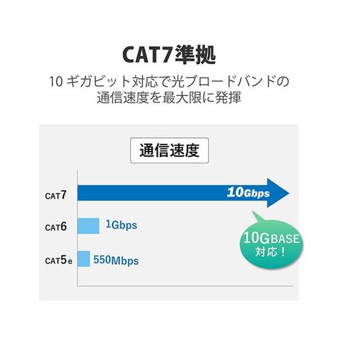 ■規格:CAT7準拠(10BASE-T/100BASE-TX/1000BASE-T/1000BASE-TX/10GBASE-T)※CAT7準拠はケーブル部のみ。コネクターはRJ45仕様。