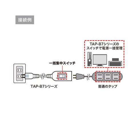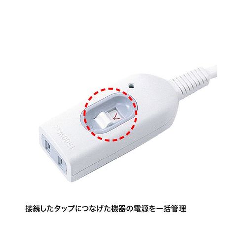 ●中間スイッチ付きで機器のON・OFFができ、お手持ちのスイッチなしのタップもスイッチ付きにできます。