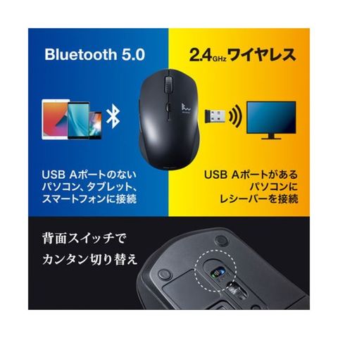 ●パソコン、タブレットなどいろいろ接続できるBluetoothと2.4GHz対応のコンボマウス