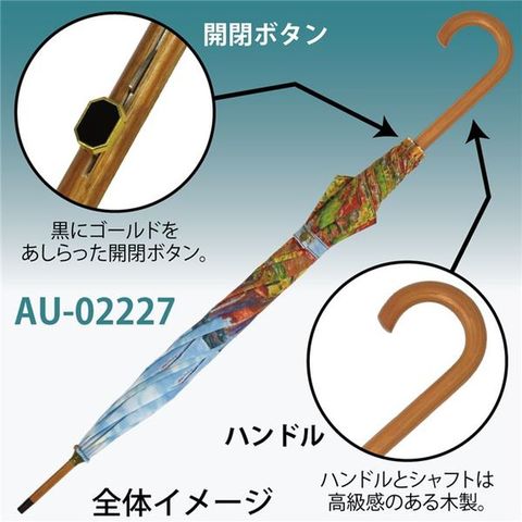 【Automatic Umbrella】ナチュラルな雰囲気を残す木製ハンドルの名画ジャンプ傘。色鮮やかな名画が雨の日の気分を上げてくれます。