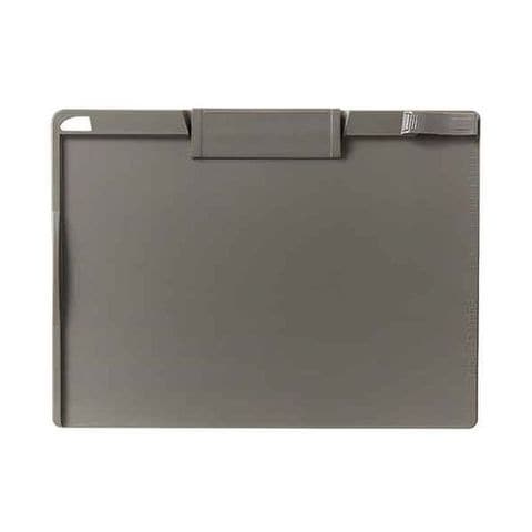 ●片手でクリップ開閉、樹脂製クリップボード。A4ヨコ・色はグレーです。