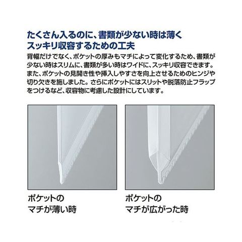 ●表裏2ポケット合わせて10mmまでの厚さに対応したたっぷり入るマチ。