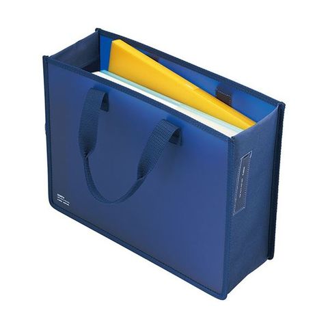 ●オフィスの移動用バッグに。A4ファイルも収納できるストレージバッグ、色はインディゴブルーです。