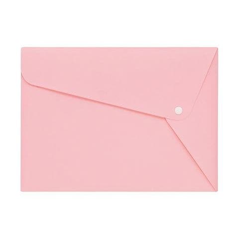 ●フタの2辺がL字に大きく開き、書類等が出し入れがしやすくなっています。A4サイズのペールピンクです。