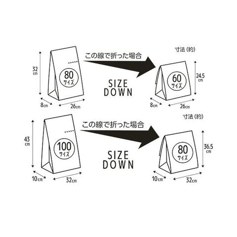 ●3辺合計80cm→60cm対応にサイズダウン可能な宅配袋、10枚入です。