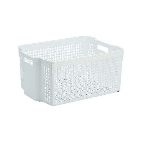 ●積み重ねて使える収納バスケット。A4サイズ対応・大で色はホワイトです。