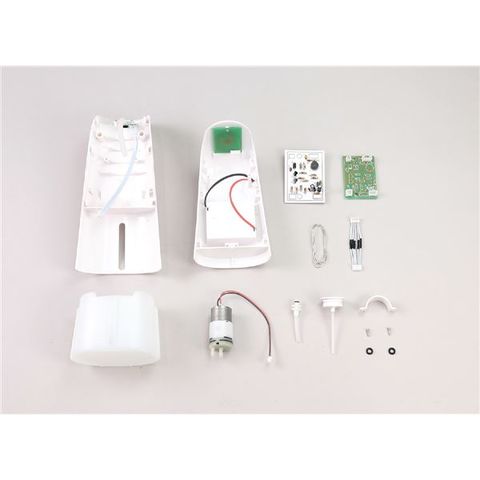 【セット内容】本体×1、基板×1、電子部品台紙×1、はんだ×1、モーター×1、モーターカバー×1、タンク×1、タンクの栓×1、タンクのチューブ×1、ネジ×2、Oリング×2