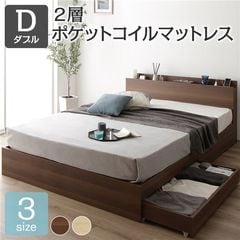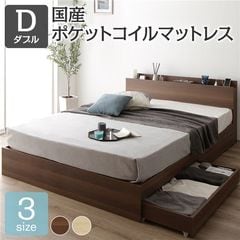 ベッド 収納付き 木製 コンセント付き ナチュラル ダブル 国産ポケットコイルマットレス付き 【同梱不可】【代引不可】[▲][TP]のレビュー