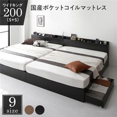 ベッド 収納付き 連結 木製 コンセント付き ナチュラル ワイドキング280(D+D) 2層ポケットコイルマットレス付き 【同梱不可】【代引不可】[▲][TP]