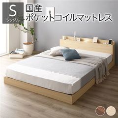 ベッド シングル 2層ポケットコイルマットレス付き ブラウン コンセント すのこ 【同梱不可】【代引不可】[▲][TP]