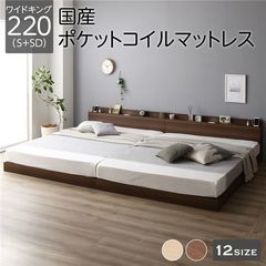 ベッド ワイドキング 280(D+D) 2層ポケットコイルマットレス付き ホワイト 連結 コンセント すのこ 【同梱不可】【代引不可】[▲][TP]