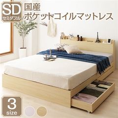 ベッド 収納付き 木製 カントリー コンセント付き ナチュラル セミダブル 2層ポケットコイルマットレス付き 【同梱不可】【代引不可】[▲][TP]のレビュー