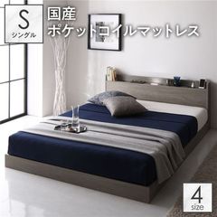 ベッド セミシングル 2層ポケットコイルマットレス付き グレージュ ロータイプ 低床 すのこ 照明 宮付 棚付 コンセント 【同梱不可】【代引不可】[▲][TP]