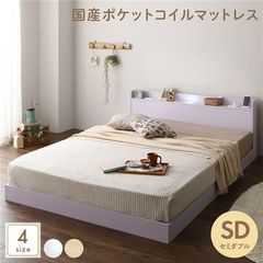 ベッド すのこ 木製 コンセント付き ホワイト セミダブル 2層ポケットコイルマットレス付き 【同梱不可】【代引不可】[▲][TP]
