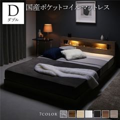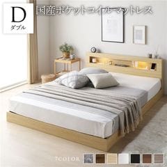 ベッド セミダブル 2層ポケットコイルマットレス付き グレージュ 低床 すのこ 照明付 宮付 棚付 コンセント付 ローベッド 【同梱不可】【代引不可】[▲][TP]