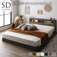 ベッド セミシングル 2層ポケットコイルマットレス付き ヴィンテージブラウン 低床 すのこ 照明付 宮付 棚付 コンセント付 ローベッド 【同梱不可】【代引不可】[▲][TP]