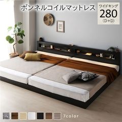 ベッド ワイドキング 220(S+SD) ボンネルコイルマットレス付き ブラック 連結 低床 照明付 棚付 宮付 コンセント付 すのこ ローベッド 【同梱不可】【代引不可】[▲][TP]