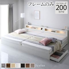 ベッド ワイドキング 260(SD+D) ベッドフレームのみ ホワイト 照明付 収納付 棚付 宮付 コンセント付 【同梱不可】【代引不可】[▲][TP]