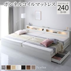 ベッド ワイドキング 260(SD+D) ボンネルコイルマットレス付き ホワイト 照明付 収納付 棚付 宮付 コンセント付 【同梱不可】【代引不可】[▲][TP]のレビュー