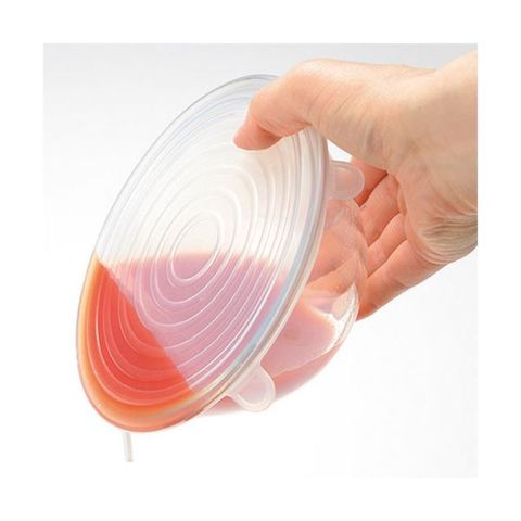 伸びてピタッと保存できる抗菌剤入りのラップです。ピッタリ容器にフィットするので汁物が漏れにくいです。着脱しやすいつまみも付いています。洗って繰り返し使えるので環境にも優しい商品です。