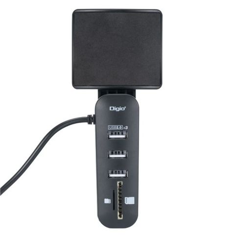 ●Digio2 USB2.0 3ポートハブ+SD/microSDカードリーダー/ライター付 ヘッドフォンフック ブラック HPH-002BK