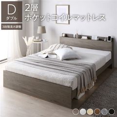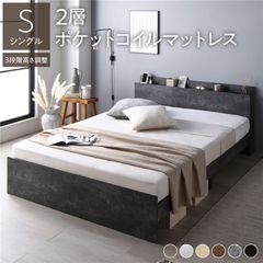 ベッド シングル 2層ポケットコイルマットレス付き ナチュラル 高さ調整可 棚付き 宮付き コンセント付き すのこ 【同梱不可】【代引不可】[▲][TP]