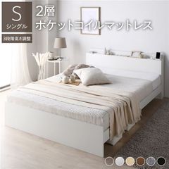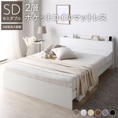 ベッド ダブル 2層ポケットコイルマットレス付き ブラウン 高さ調整可 棚付き 宮付き コンセント付き すのこ 【同梱不可】【代引不可】[▲][TP]