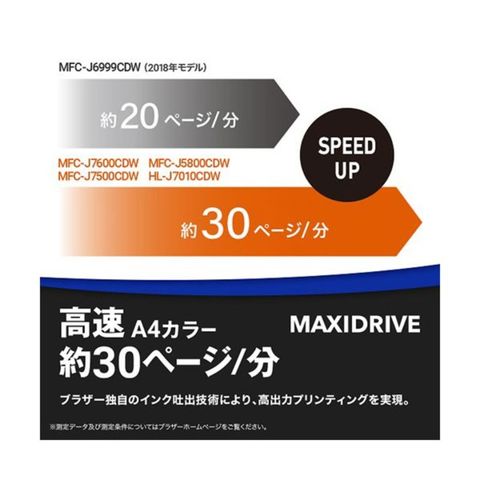 印刷速度:カラー:約30ipm(片面)・約21ipm(両面)、モノクロ:約30ipm(片面)・約21ipm(両面)